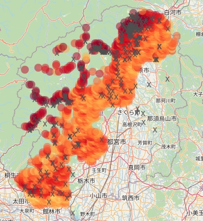 那珂川町周辺はドットがついておらず、ちょっとホッとしております。